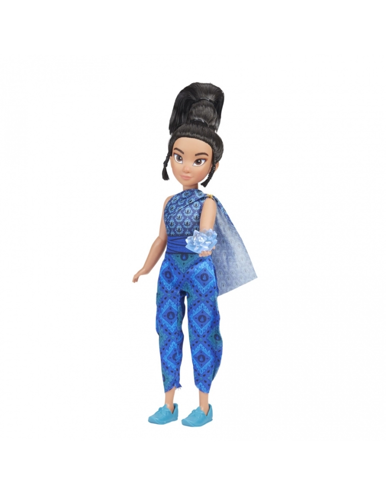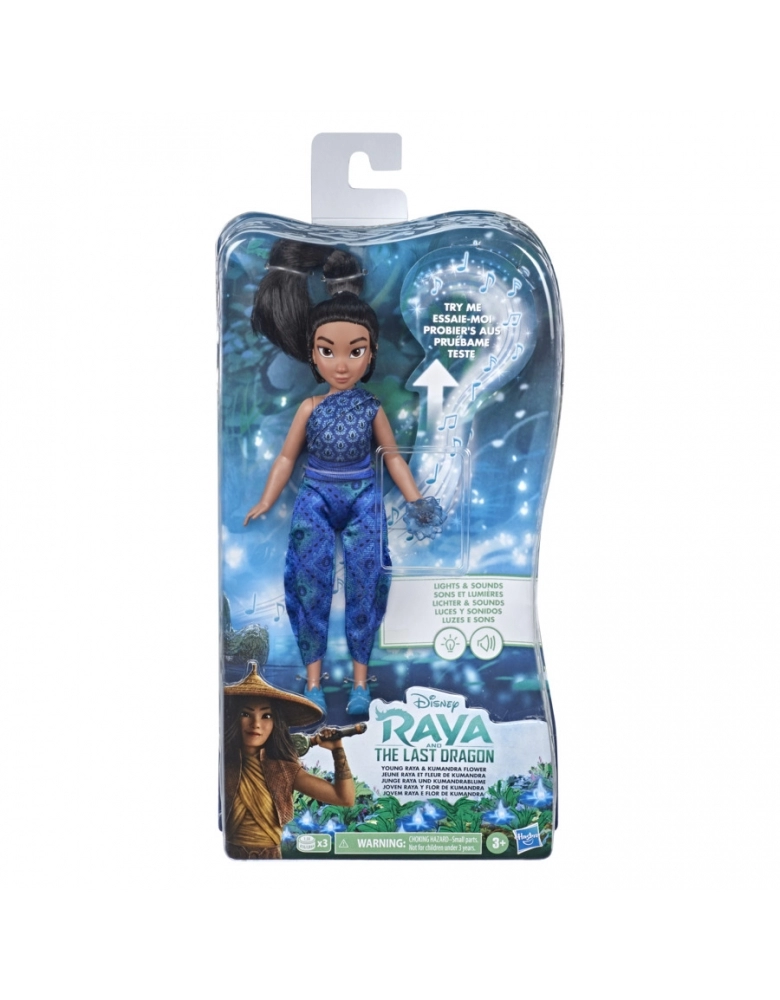 No filme Raya e o último dragão, assim como o seu pai, Raya acredita em dragões. Inspirada no filme Raya e o último dragão, a boneca Jovem Raya e flor de Kumandra celebra a jovem guerreira. Basta levantar o braço da Jovem Raya para tocar uma música e a flor de Kumandra que ela segura se iluminará. Esta boneca Raya possui 5 pontos de articulação e vem com uma roupa azul e sapatos. Esta boneca inspirada no filme é um presente incrível de aniversário ou outras celebrações para crianças a partir de 3 anos. Outros personagens disponíveis como Sisu e Tuk Tuk (vendidos separadamente e sujeitos à disponibilidade).