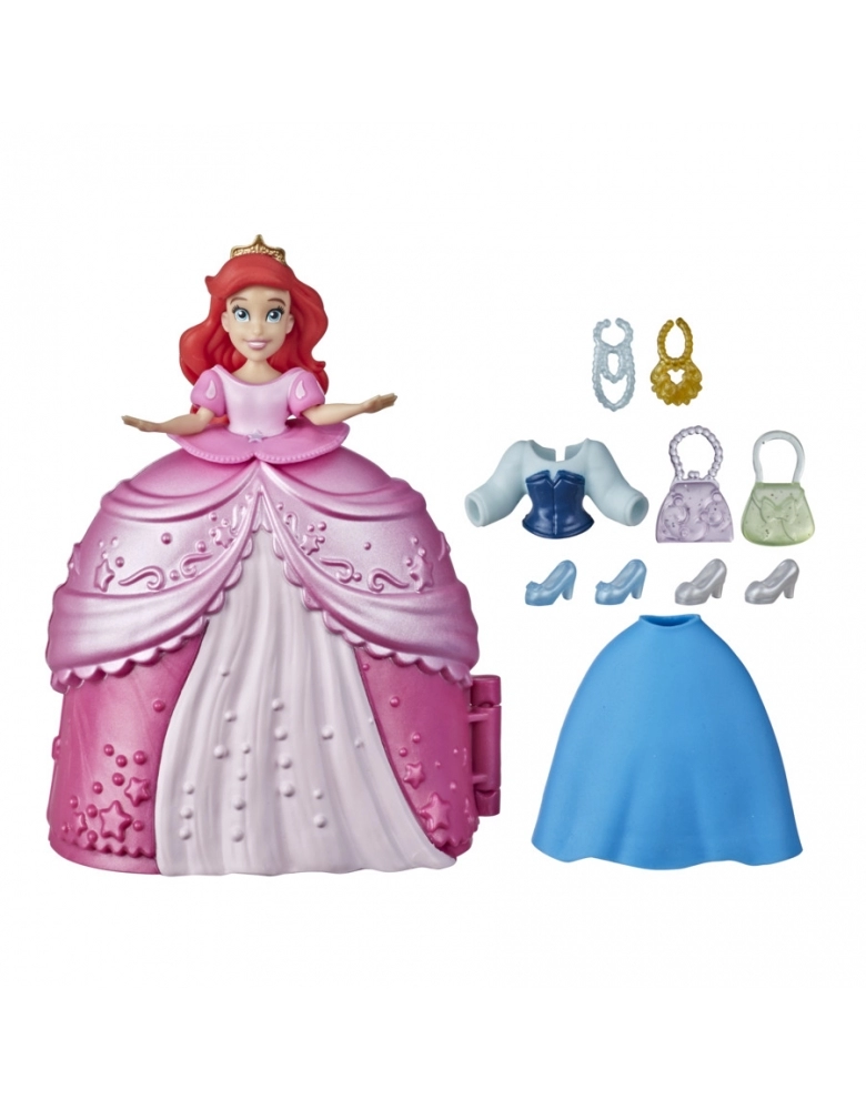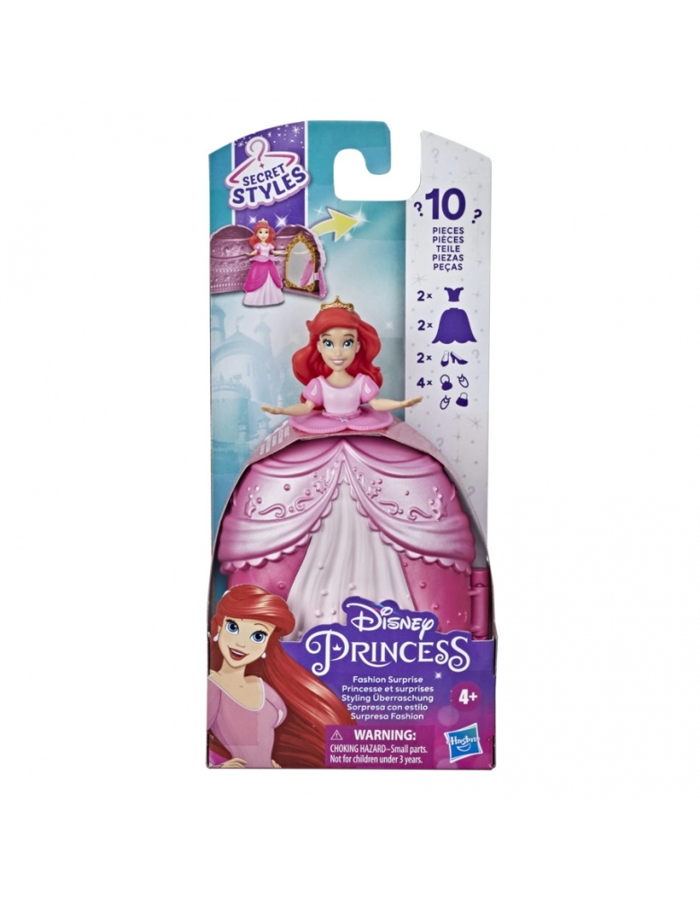 Um mundo de imaginação se abre com a boneca Disney Princess Secret Styles Surpresa Fashion da Ariel. Esta figura de 8,5 cm vem com uma saia especial que se abre para revelar um closet com espelho. As crianças a partir dos 4 anos podem se divertir com 2 saias diferentes, 2 corpetes e 2 pares de sapato além de 2 bolsas e 2 colares para montar um visual. Outras bonecas e brinquedos da linha Secret Styles disponíveis (vendidos separadamente e sujeitos à disponibilidade).