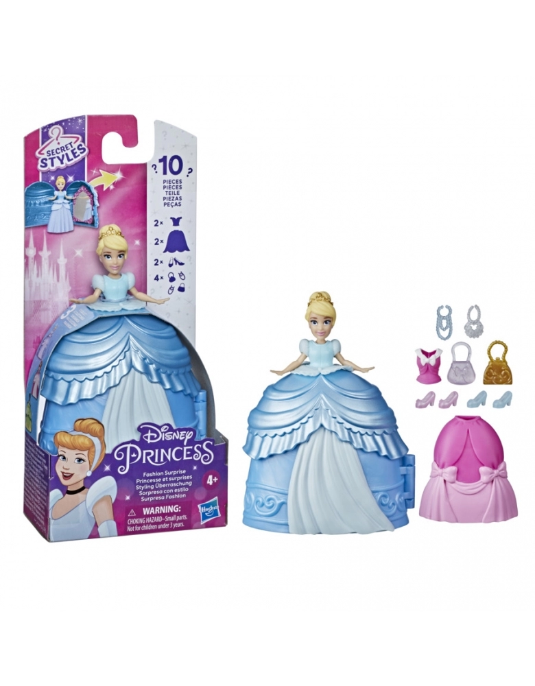 Um mundo de imaginação se abre com a boneca Disney Princess Secret Styles Surpresa Fashion da Cinderela. Esta figura de 8,5 cm vem com uma saia especial que se abre para revelar um closet com espelho. As crianças a partir dos 4 anos podem se divertir com 2 saias diferentes, 2 corpetes e 2 pares de sapato além de 2 bolsas e 2 colares para montar um visual. Outras bonecas e brinquedos da linha Secret Styles disponíveis (vendidos separadamente e sujeitos à disponibilidade).