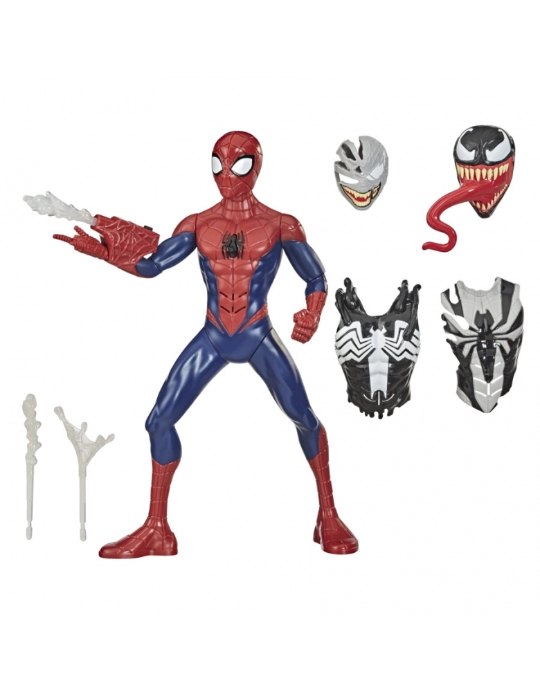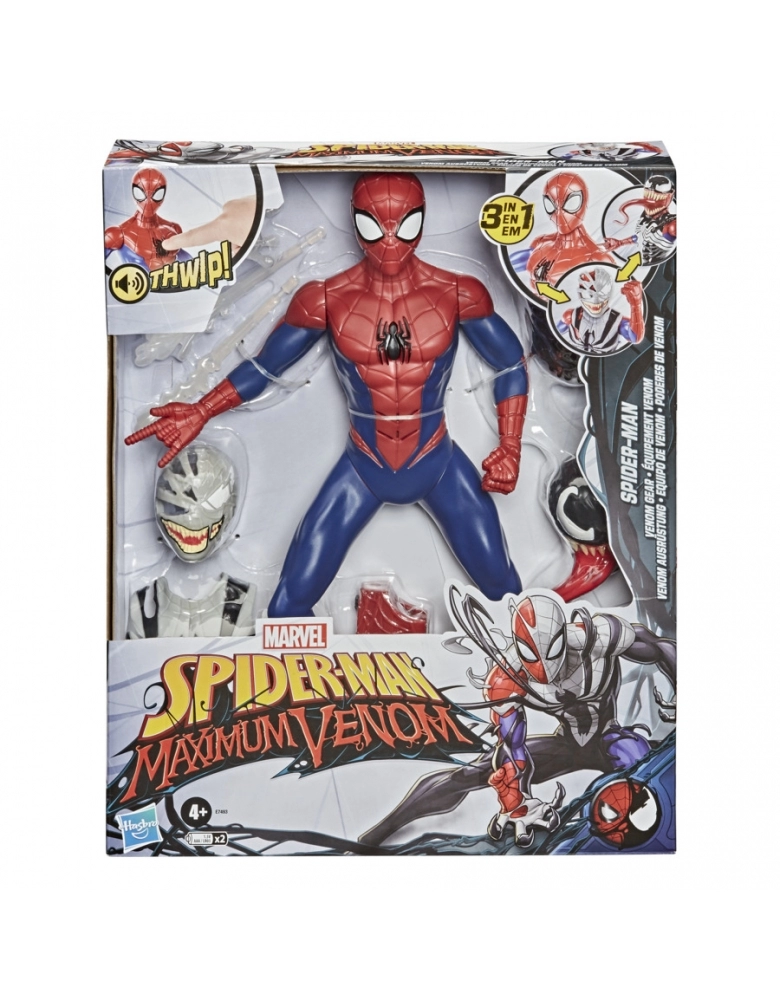 PETER PARKER ASSIMILA OS PODERES DO ALIENÍGENA VENOM E TORNA-SE HOMEM-ARANHA VENOMIZADO OU HOMEM-ARANHA SIMBIONTE! Agora, o Homem-Aranha está venomizado com esta figura inspirada na série Spider-Man Maximum Venom! As crianças podem vestir essa figura clássica do Homem-Aranha em um traje preto venomizado ou em um traje cinza e preto de simbionte para aventuras de outro mundo. São três modos diferentes para o amigão da vizinhança Homem-Aranha! A figura também produz sons e diz frases em inglês bas