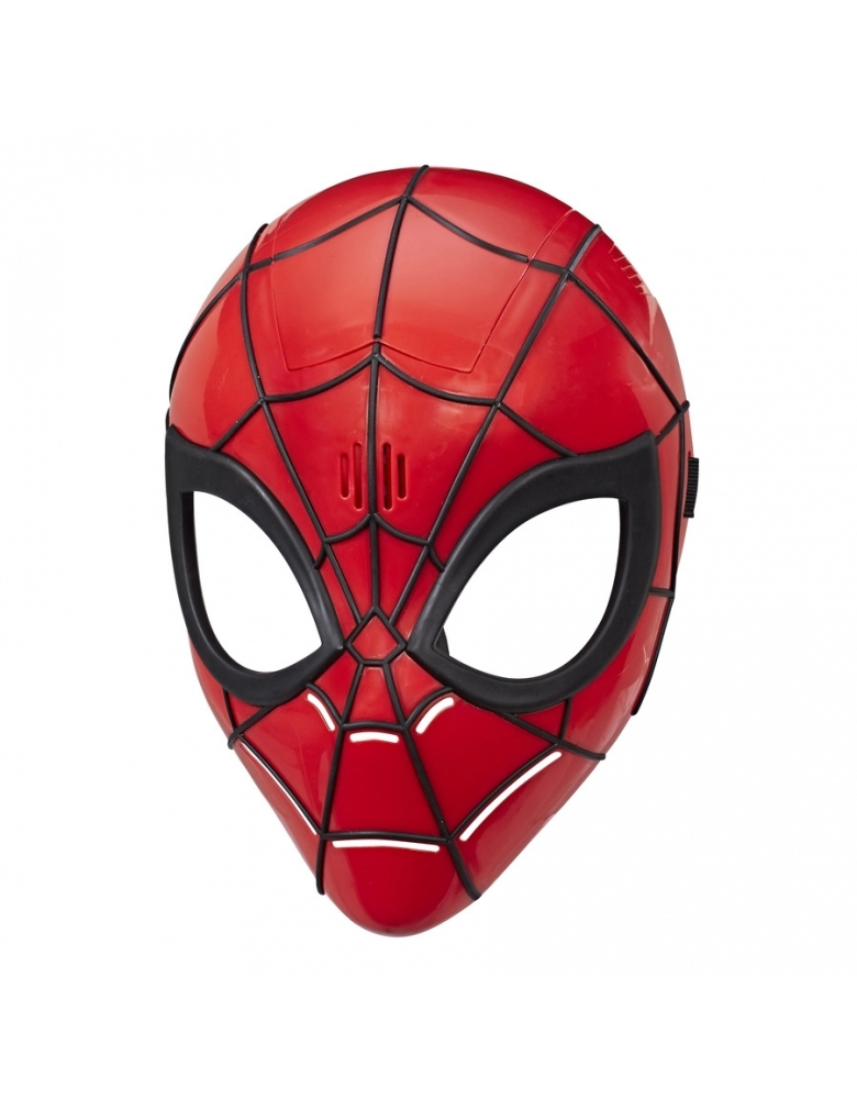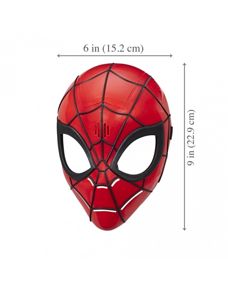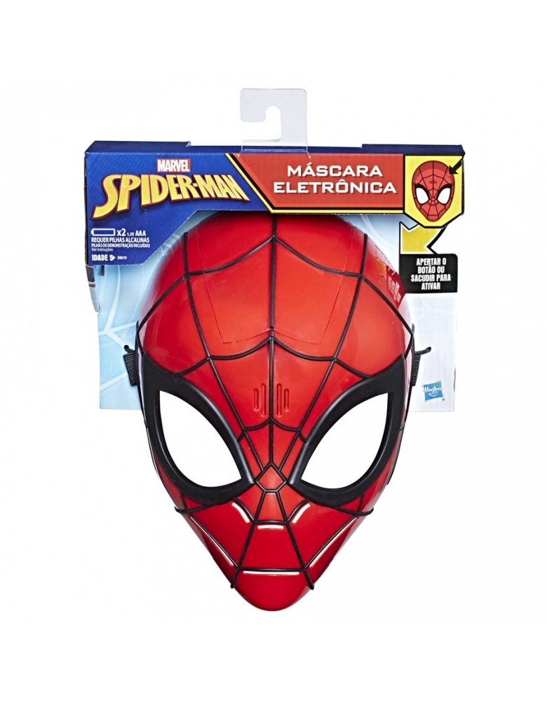 Máscara eletrônica do Homem Aranha com sensor de movimento. Emite frases do Homem Aranha ao acionar um botão e, ao continuar em movimento depois de pressioná-lo um vez, a máscara continua emitindo frases, assim como o herói tagarela. Requer uso de pilhas, embalagem com "try me".