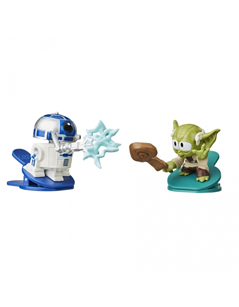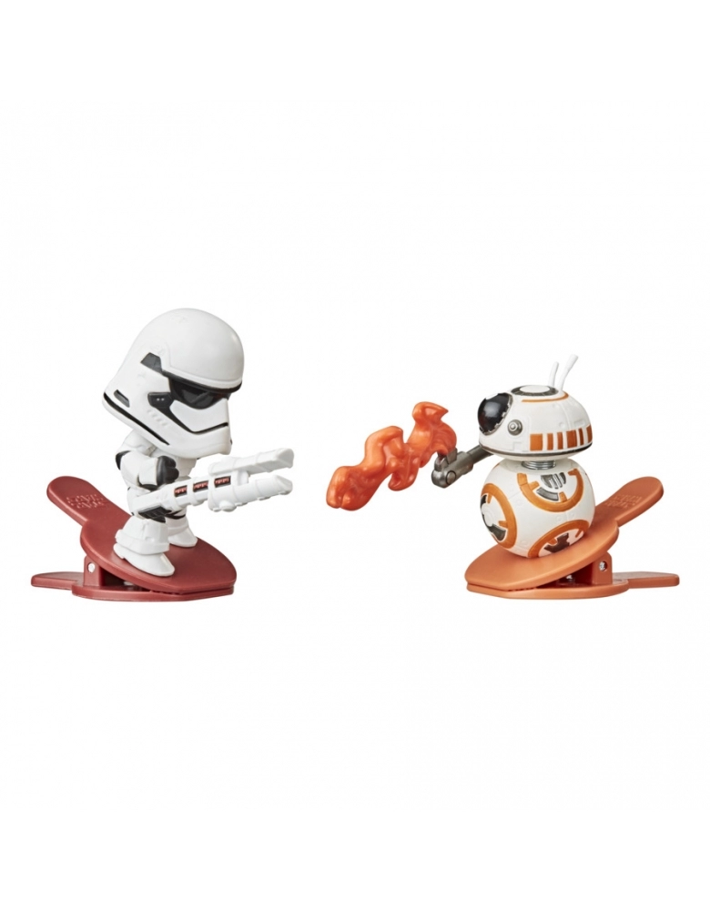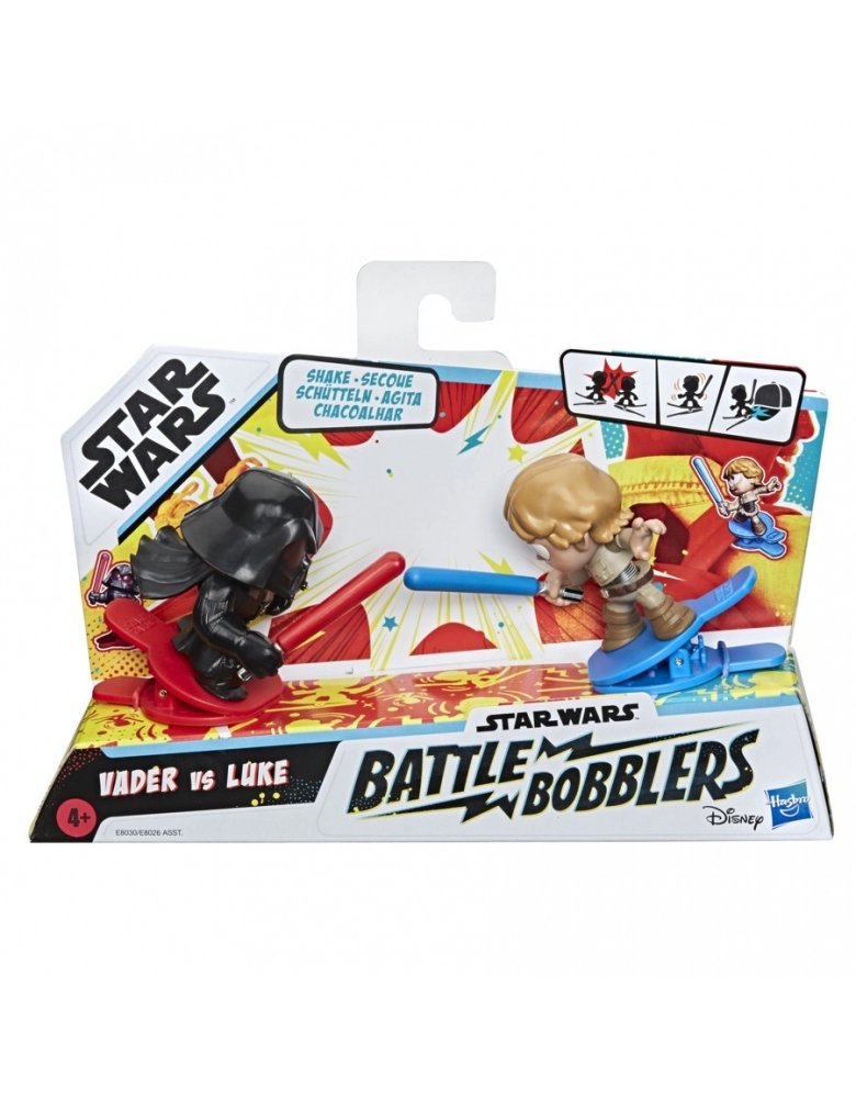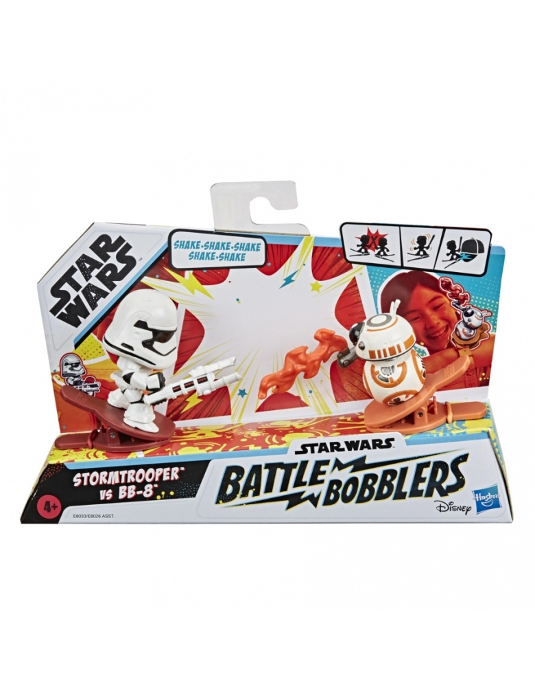 Rivais icônicos e pares inesperados se enfrentam como novos Star Wars Battle Bobblers! Esses personagens saltitantes montados em molas de Star Wars vêm em pacotes de dois, permitindo que os fãs criem cenas de duelo imediatamente. Leve a batalha para qualquer lugar: clipes afixados na base dessas figuras os tornam ótimos para exibição segura em lugares surpreendentes, como chapéus, cadernos ou cadarços. Contém um pack duplo Star Wars Battle Bobblers.