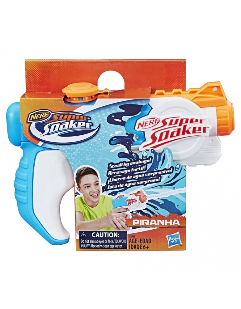 Muita água e diversão com o novo lançador de água Nerf SuperSoaker Piranha! Em um tamanho compacto que é fácil de levar para qualquer lugar. É só encher o tanque com capacidade de 177ml, escolher o alvo e lançar a água para começar a brincadeira. O lançador é perfeito para usar com uma mão só, assim as crianças podem se mover mais livremente enquanto planejam sua estratégia para molhar os adversários!