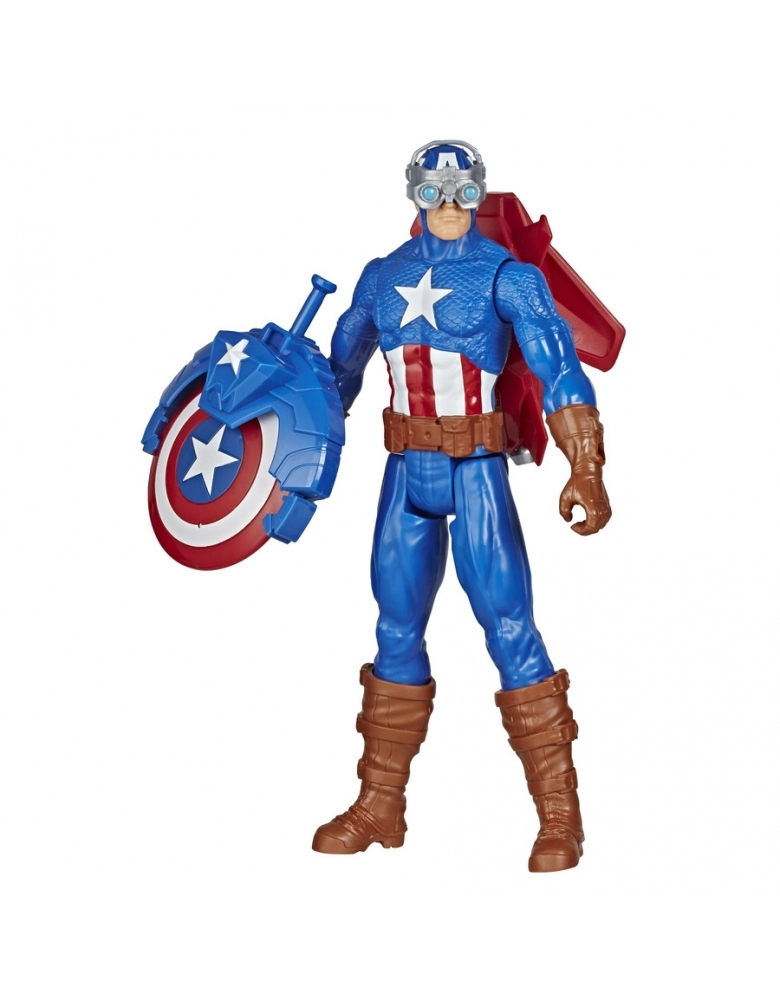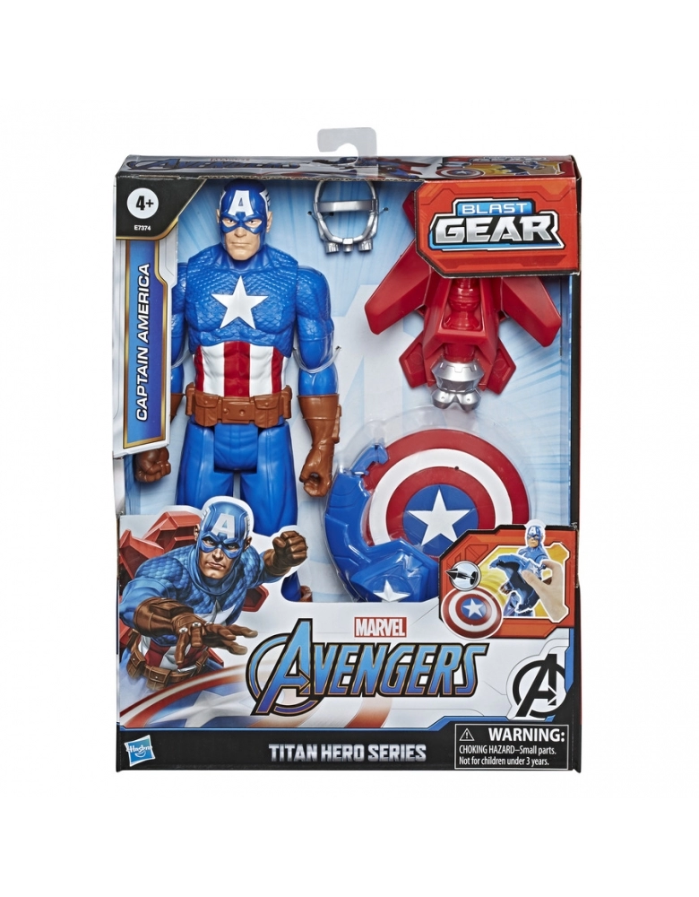 Capitão américa com 30 cm. Imagine o ousado Steve Rogers vestindo-se como um herói corajoso com design clássico de personagens do Universo Marvel. Com acessório de lançamento de projétil Blast gear, o Capitão américa enfrentará ainda mais aventuras.