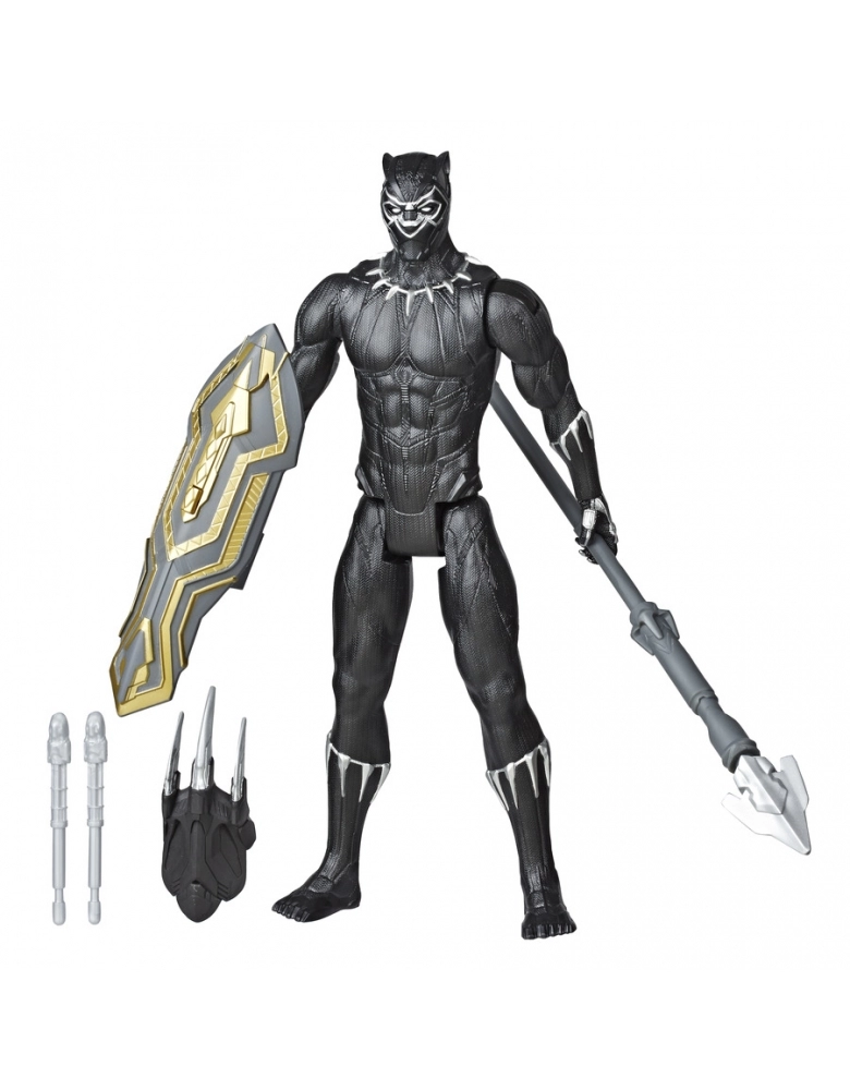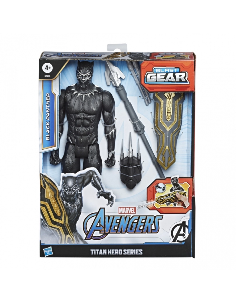 Esta figura de Pantera Negra em escala de 30 cm da série Titan Hero apresenta um design clássico e vem com acessórios inspirados em personagens que se prendem aos braços, mãos e costas da figura, incluindo um lançador de projéteis e 2 projéteis. Os acessórios são compatíveis com todas as figuras Titan Hero Blast Gear e Titan Hero Power FX. As figuras Titan Hero Blast Gear também são compatíveis com os pacotes e lançadores Titan Hero Power FX para efeitos sonoros (disponível com figuras Titan Her